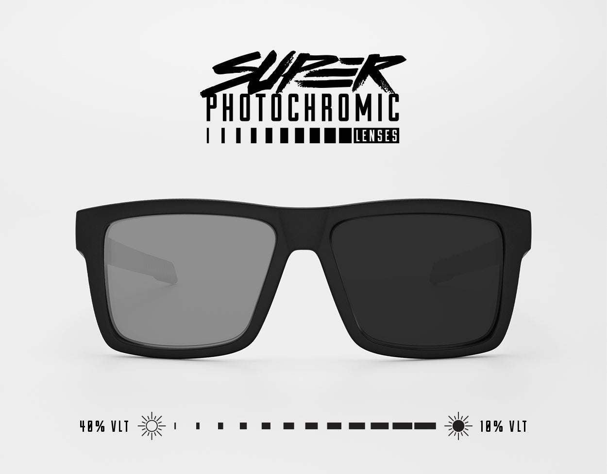 Our new Super Photochromic lenses start from a mild tint and drop down to an ultra-dark 10% VLT.